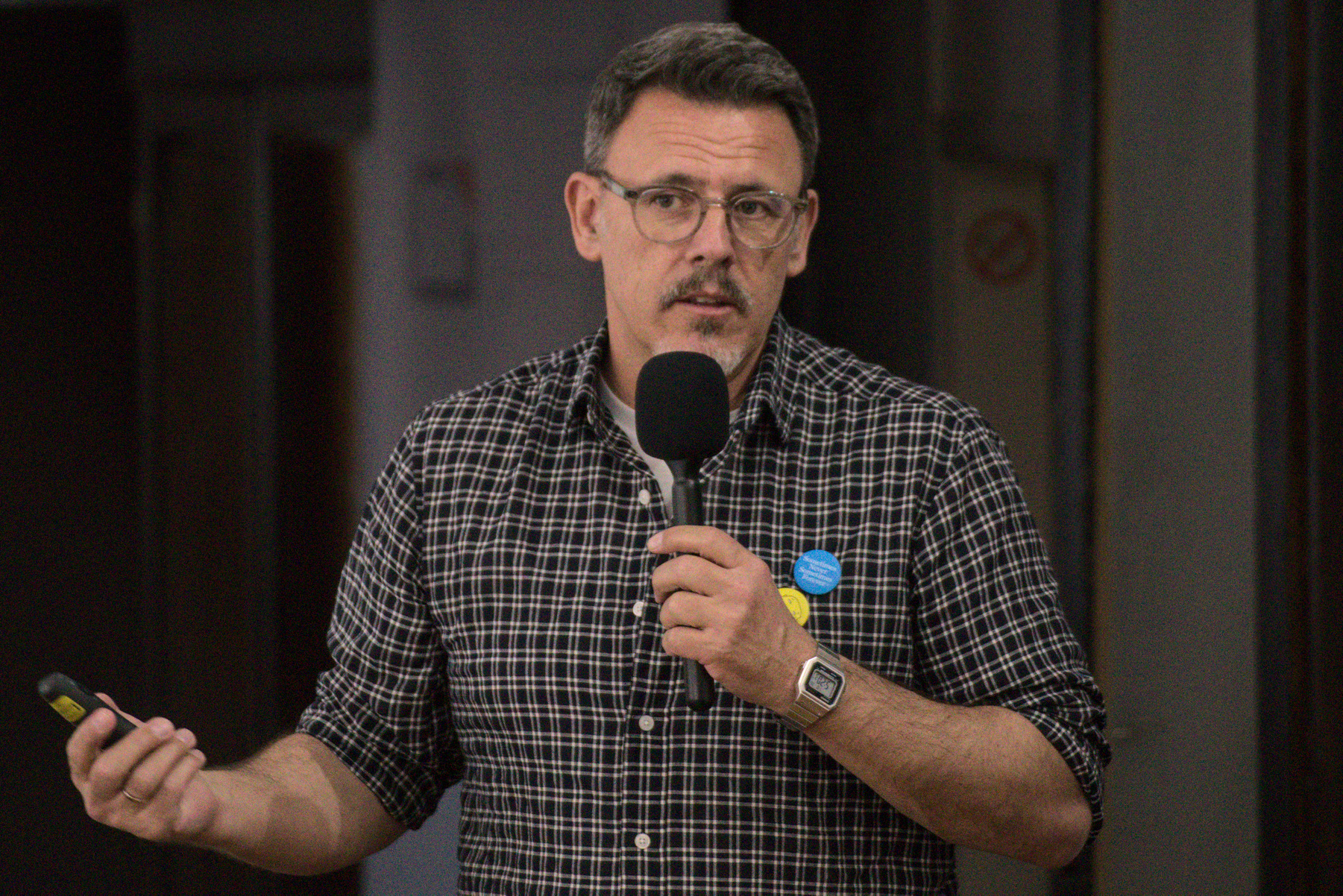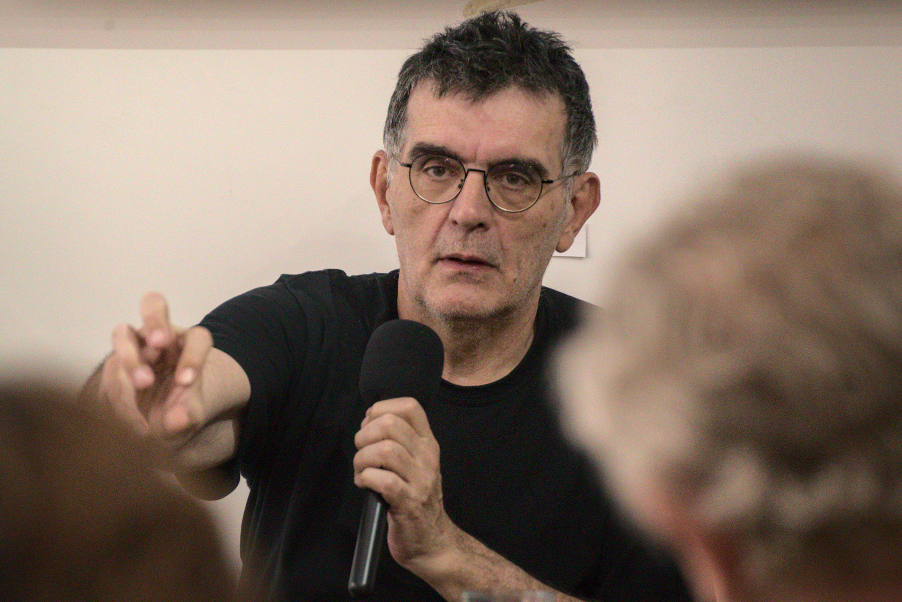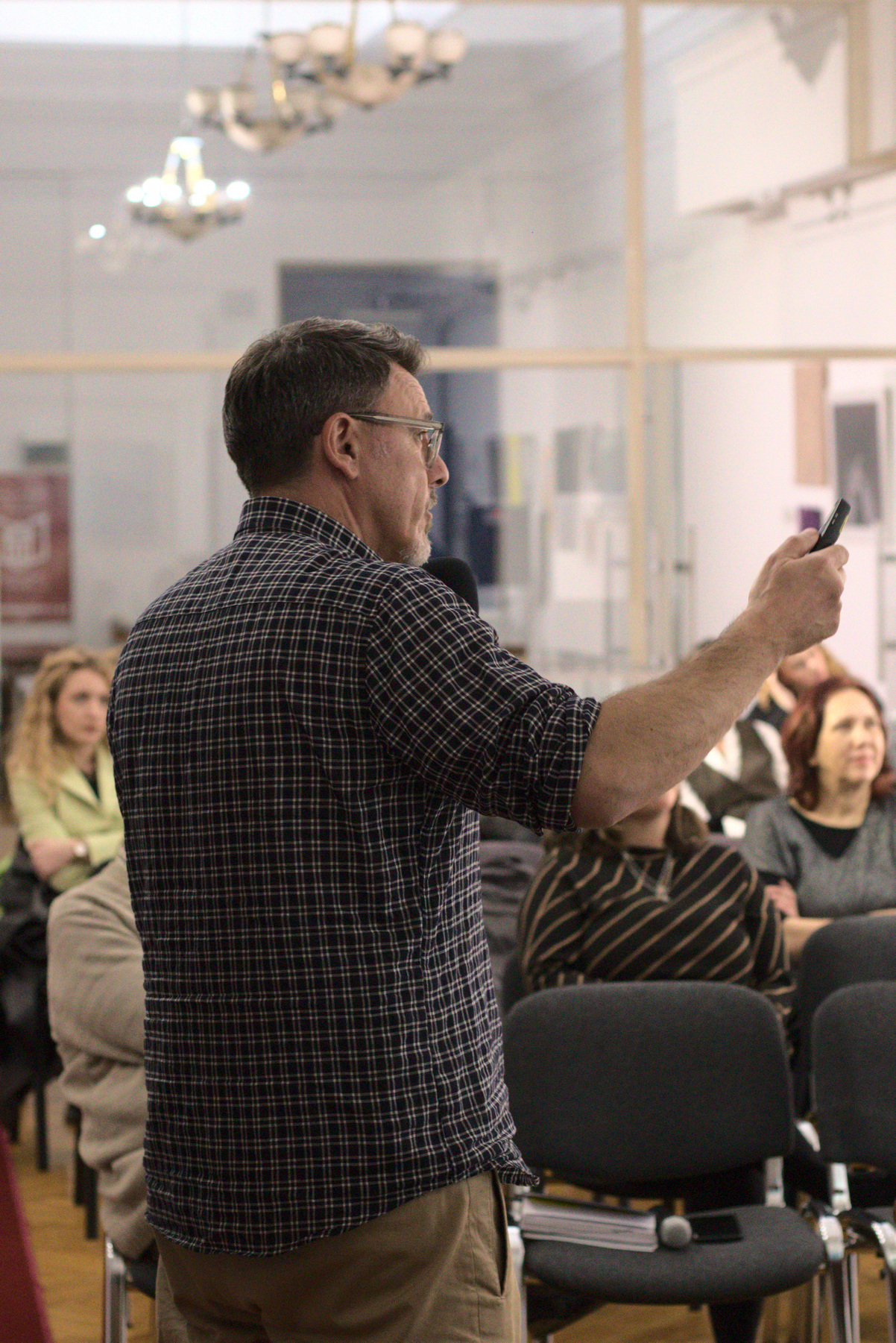 На трибини, првој у оквиру серије „Ум Наум“, страну уметности заступао је Славимир Стојановић Футро, дизајнер обележен као знаменито име у области графике и дизајна у образложењима жирија више стотина награда, домаћих и светских. Како сам каже – награду за животно дело добио је пре него што је дипломирао. Његова надахнута презентација водила нас искреношћу, духовитошћу и без патетике кроз изазове у животу које су га навеле да својим талентом осликава и стварност и оно иза ње као и испред. Стваралаштво као самоостварење.